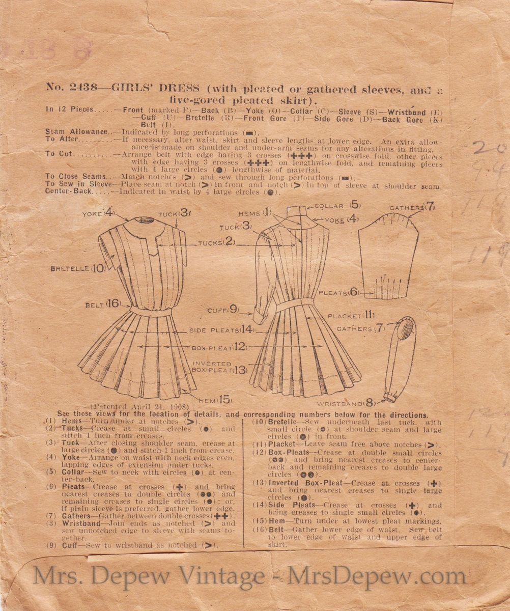 Incredibly Rare Original 1900s Mccall 2438 Girl S Dress Sewing Pattern 1909